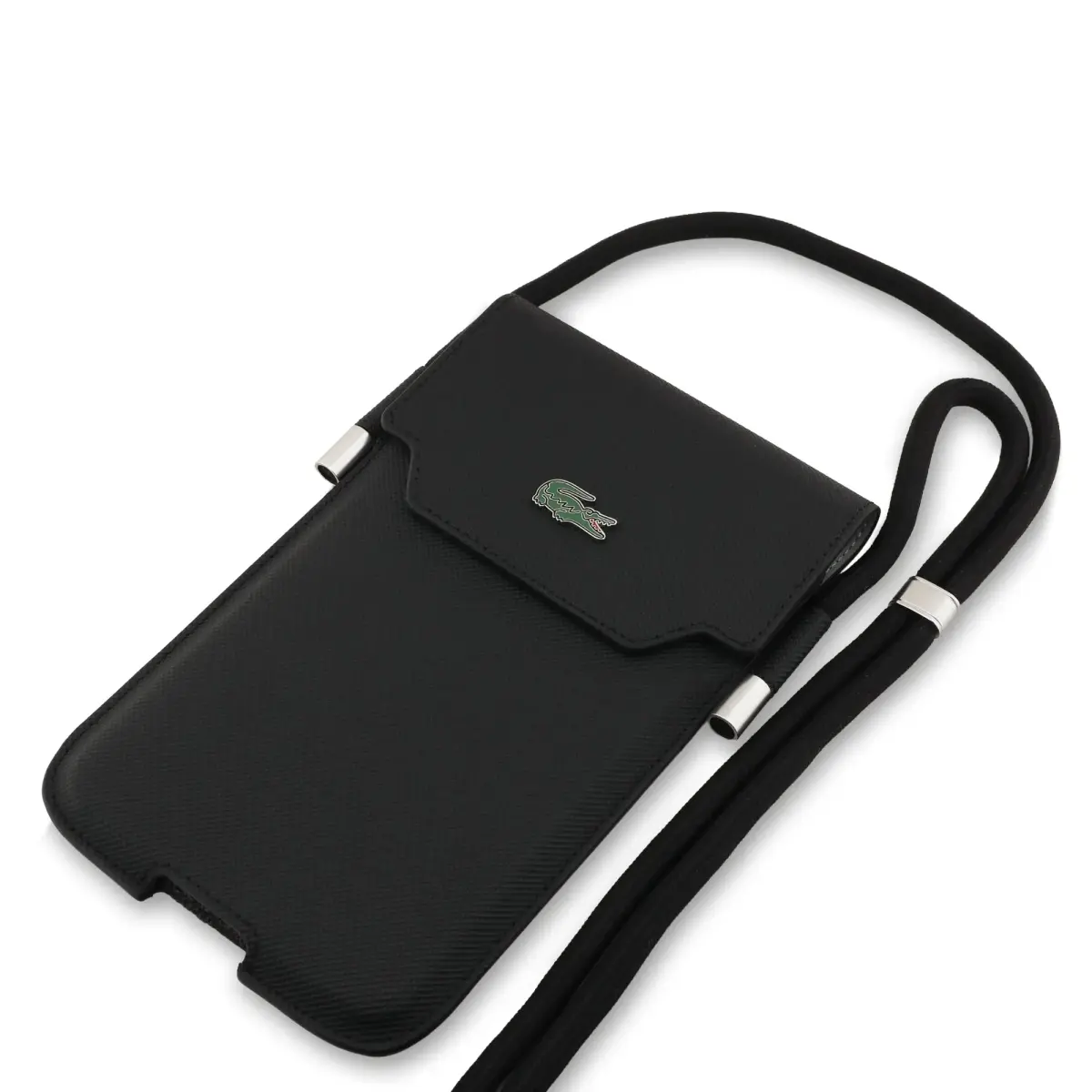 Lacoste PVC Iconic Petit Pique Metal Logo Phone Pouch XL Black
