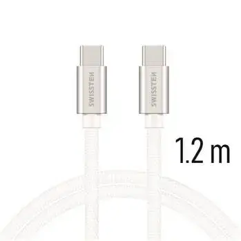 Swissten Textile Universāls Quick Charge 3.0 USB-C uz USB-C Datu un Uzlādes Kabelis 1.2 m Sudraba