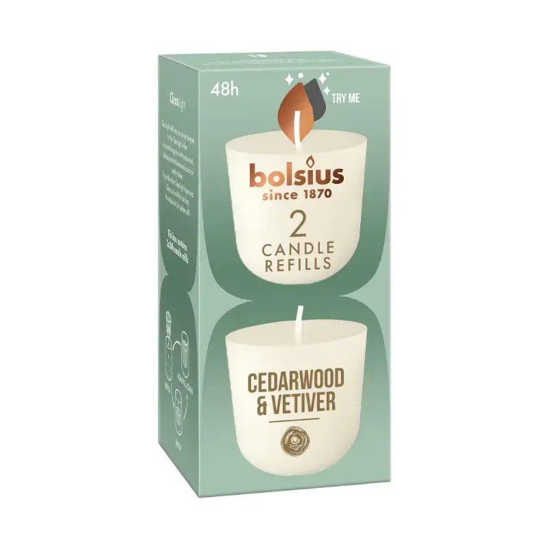 Izbaudiet mūsu ciedru koka un vetivēriju aromātisko sveci atkal un atkal uzpildāmā sveču burciņā. Silts, austrumniecisks ciedru koka un ziedu aromāts.
