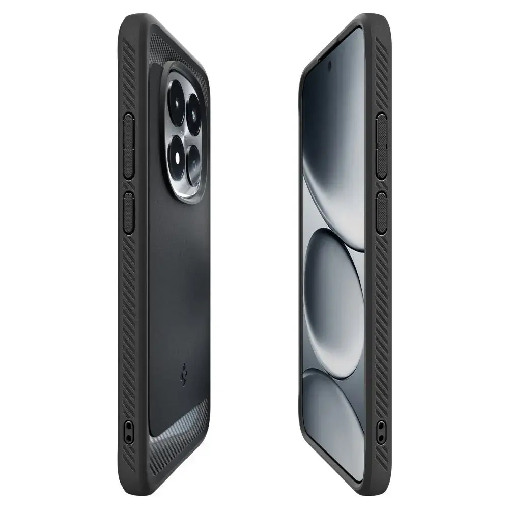 Elastyczne etui Spigen Rugged Armor wyróżnia się karbonową teksturą o nowoczesnym wyglądzie. Jego smukła forma idealnie dopasowuje się do telefonu, nie zmieniając jego oryginalnej sylwetki.