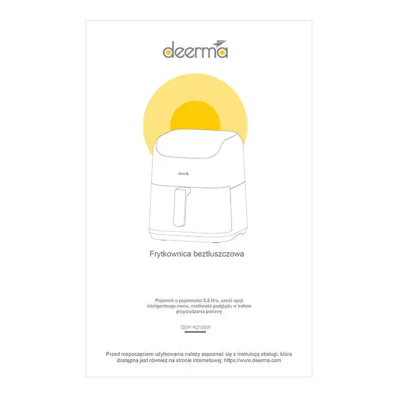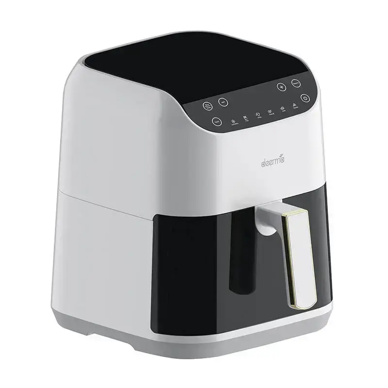 The Deerma DEM-KZ130W is a 1300W oil-free fryer that uses circulating hot air in a closed circuit to prepare a delicious meal for you. To ensure your safety, the device is equipped with dynamic NTC temperature control and a handle to protect against burns, making it even more enjoyable to use. In addition, the fryer has buttons for changing the temperature, setting the delay time for cooking, selecting the menu, and turning it on and off.