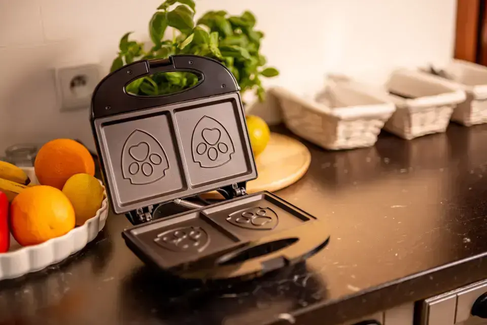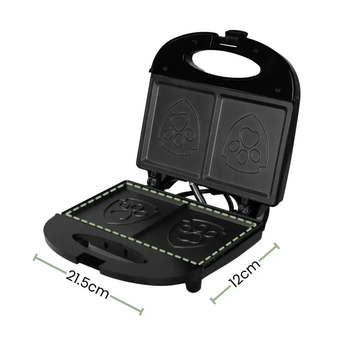 The Paw Patrol sandwich toaster is a perfect way to turn everyday breakfast into a real adventure. With special heating plates, the device toasts a badge pattern from a dog's paw on the sandwiches – a recognizable motif from the Paw Patrol cartoon that will delight every child. It's a great idea to diversify meals and encourage the youngest to eat. The licensed design featuring characters such as Chase, Skye, Marshall, and Rubble makes the toaster not only functional but also visually appealing. The device allows for the preparation of two sandwiches at the same time, which is ideal for families. With a power of 750 W, it ensures quick heating and even toasting, while the non-stick coating makes cleaning and removing the toasts easier. The secure locking clip guarantees user comfort, and the option to store it vertically saves space on the kitchen counter. The classic black color ensures that the device fits into any kitchen. The Paw Patrol toaster is not just a practical solution, but also a reliable joy for little fans of the cartoon. The package includes the sandwich toaster and an instruction manual.