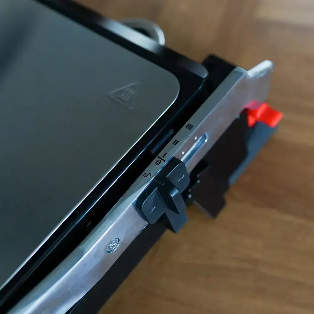 Thanks to the adjustable lid, you can grill on one or two plates.