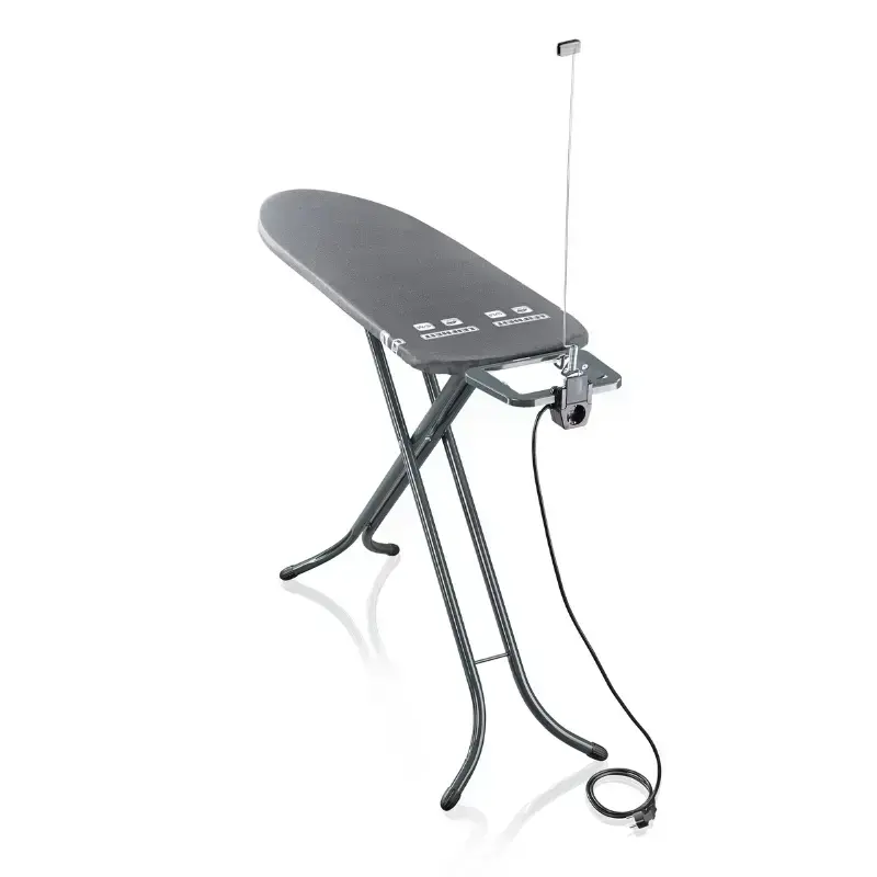 Efektīva gludināšana, augsta kvalitāte un stilīgs dizains! Ievērojami vieglāks nekā parastie gludināmie dēļi un aprīkots ar unikālu gludināšanas virsmu. Tā īpašais apvalks ar Thermo Reflect tehnoloģiju notur tvaiku un siltumu no gludekļa un neļauj tam iztvaikot caur gludināšanas virsmu. Pateicoties divpusējam gludināšanas efektam, veļa tiek gludināta no abām pusēm vienlaikus. Air Board M Black Plus uzstādīšana un novākšana ir vienkārša, pateicoties gludināmajai virsmai, kas izgatavota no īpaši vieglas speciālas plastmasas. Tā padara Air Board M Black Plus vieglāku par jebkuru citu parasto metāla gludināmo dēli. Gludināmā virsma balstās uz pilnīgi stabila rāmja, kas var stabilizēties arī uz nelīdzenām grīdām. Gludināmajam dēlim ir regulējams augstums, dēlis var būt pacelts līdz maksimālajam darba augstumam 98 cm. Tas ir aprīkots ar fiksētu gludekļa balstu, kontaktligzdu un kabeļa turētāju, lai atvieglotu gludināšanu. Thermo Reflect tehnoloģija padara šo gludināmo dēli ideāli piemērotu lietošanai ar standarta gludekļiem un tvaika gludekļiem.