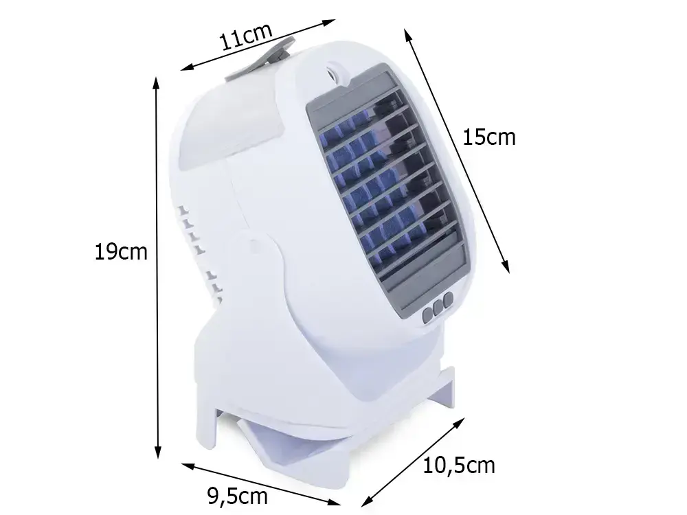 Šī kompaktā ierīce darbojas kā personīgais gaisa kondicionieris un mitrinātājs, kas paredzēts vēsas un ērtas vides nodrošināšanai nelielās telpās.