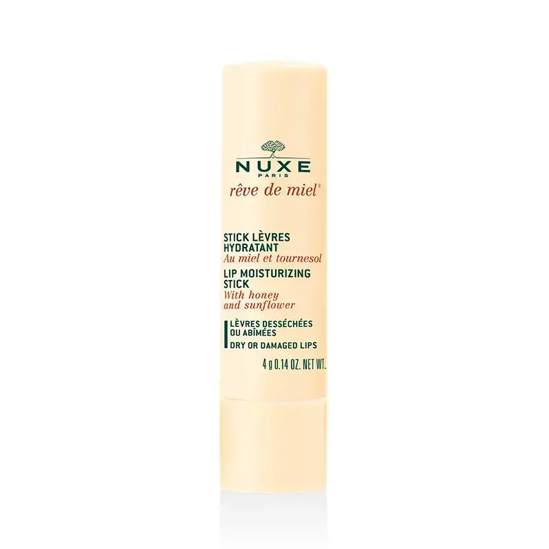 Nuxe Reve De Miel Lip Stick (4g Stick) This Reve De Miel Lip Stick from Nuxe is a super hydrating lipstick that works to protect and soothe dry or chapped lips. Restoring suppleness, this lip stick contains extracts of Precious Sunflower, Macadamia Nut Oils, Barley Extract, Argan Oil and Shea Butter, ensuring that your lips get only the best treatment. Simply apply to the lips as often as required and enjoy the results!