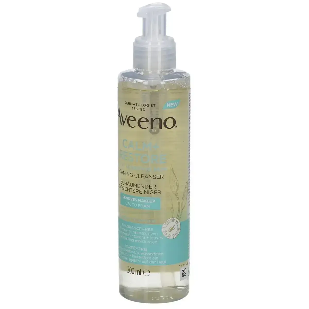 Aveeno Calm + Restore, 200 ml, Cleansing for Women, Before you start your regular skincare routine, it is very important to prepare your skin with a thorough cleansing - without it, the following beauty care routine would not be nearly as effective. The AveenoCalm + Restore cleanser helps to remove all the impurities that have settled on the skin and in the pores throughout the day or overnight, leaving the skin perfectly clean and ready for any further skin treatments. Characteristics: washes the whole face gently and thoroughly suitable for sensitive skin removes makeup effectively dissolves even waterproof makeup perfectly hydrates the skin regenerates the skin soothes irritation Ingredients: oat extract – soothes, provides relief to sensitive skin, maintains hydration, counteracts irritation, dryness and discomfort, supports the skin barrier function hyaluronic acid – binds large quantities of water and hydrates intensively no perfume no alcohol vegan product How to use: Apply to a wet face, massage gently, then rinse carefully with water. Suitable for everyday use.