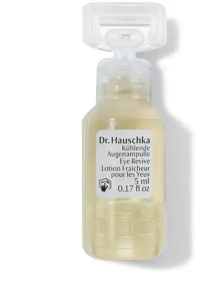 Cooling Eye Revive ampoules give hardworking eyes some soothing time out. They are particularly suitable for people who spend all day working at a computer. On long journeys, Eye Revive provides welcome refreshment and a clear outlook. The composition with eyebright, fennel, chamomile and black tea cools and soothes the eye area. Eye Revive is ophthalmologically and dermatologically tested and is also suitable for contact lens wearers. It is optimally formulated for the needs of the sensitive skin around the eyes and is suitable for all skin conditions. Twist the top of the ampoule to open. Soak a cotton pad with the contents. Separate the top and bottom halves of the cotton pad, place on closed eyes and leave to work for about ten minutes.