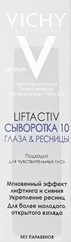 The Vichy Liftactiv Serum 10 Eyes & Lashes is a powerful eyelash fortifying, wrinkle-fighting serum for the gentle eye contour area. A formula that delivers the right amount of power to treat the eyes and lashes, and the perfect amount of tolerance! Contains 10% Rhamnose, a powerful anti-aging and soothing ingredient, for a complete skin regeneration. Illuminators for a real radiance booster from the 1st application, and ceramide, a well known ingredient, proven to fortify, nourish the fiber and.