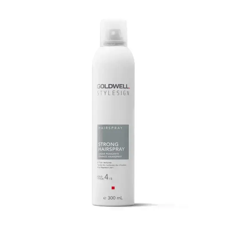 Goldwell StyleSign Strong Hairspray instantly provides strong hold with humidity and frizz-resistance for up to 72 hours. This extra-dry spray is perfect for building volume, strong, yet flexible with light shine for all hair textures, and wind proof up to windspeed 6 on Beaufort scale.* *Instrumental test comparison vs. no product. Ingredients: Alcohol Denat., Dimethyl Ether, Pentane, Acrylates/Octylacrylamide Copolymer, Water/Aqua/Eau, Aminomethyl Propanol, Caprylic/Capric Triglyceride, Himanthalia Elongata Extract, Benzoic Acid, Fragrance/Parfum, Limonene. Danger. Pressurised container: May burst if heated. Keep away from heat, hot surfaces, sparks, open flames and other ignition sources. No smoking. Do not spray on an open flame or other ignition source. Do not pierce or burn, even after use. Protect from sunlight. Do not expose to temperatures exceeding 50 C/ 122 F. Keep out of reach of children. Avoid spraying in eyes or on irritated skin. Use only as directed. Recycle only empty cans. | Goldwell Stylesign Strong Hairspray 300Ml In Clear.
