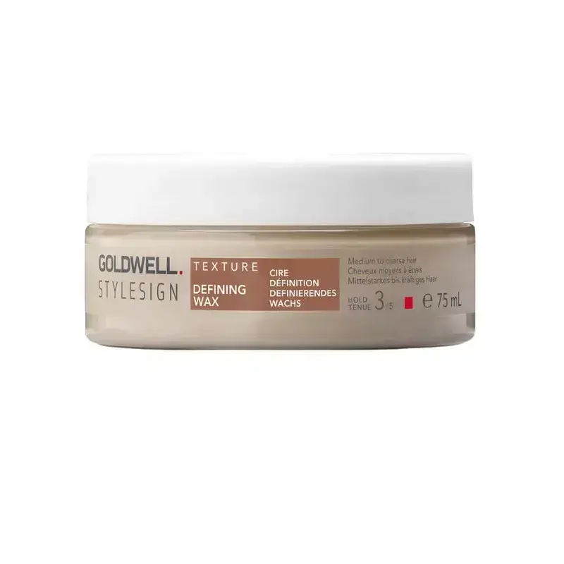 Goldwell StyleSign Defining Wax provides instant definition and lasting control with ultra-high shine finish for up to 72 hours. This wax boasts a soft texture for easy application and distribution, and gives medium hold with ultra-high shine. Ingredients: Ricinus Communis (Castor) Seed Oil, Copernicia Cerifera (Carnauba) Wax/ Cire de carnauba, Water/Aqua/Eau, Bis-Diglyceryl Polyacyladipate-2, Cetyl Esters, Coco-Glucoside, Hydroxyacetophenone, Sorbitan Caprylate, Propanediol, Caprylic/ Capric Triglyceride, Himanthalia Elongata Extract, Benzoic Acid, Fragrance/Parfum. | Goldwell Stylesign Defining Wax 75Ml In Clear.