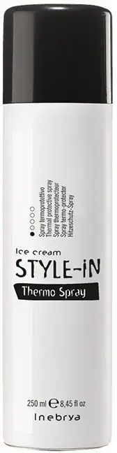 What it is: Inebrya Ice Cream Style-In Thermo Protective SprayWhat it does: Thermo Spray is a heat protection spray that guarantees protection flexibility and shine during all hot styling steps making it easier to straighten the hair with tools at high temperatures.What else you need to know: As a result of its technology the spray acts as a barrier through its filming action thereby protecting the hair from extreme heat. Its antistatic action tames the hair ensuring a smooth and soft effect.