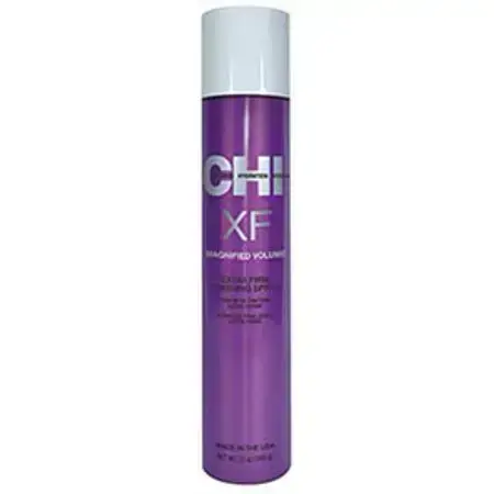 Fast drying with an extra firm hold, CHI Magnified Volume XF Extra Firm Finishing Spray provides all-day hold with incredible fullness. This humidity resistant aerosol hair spray also increases body, volume and imparts high shine. For all hair types. Extra firm hold. Humidity resistant. Imparts body, volume and shine.