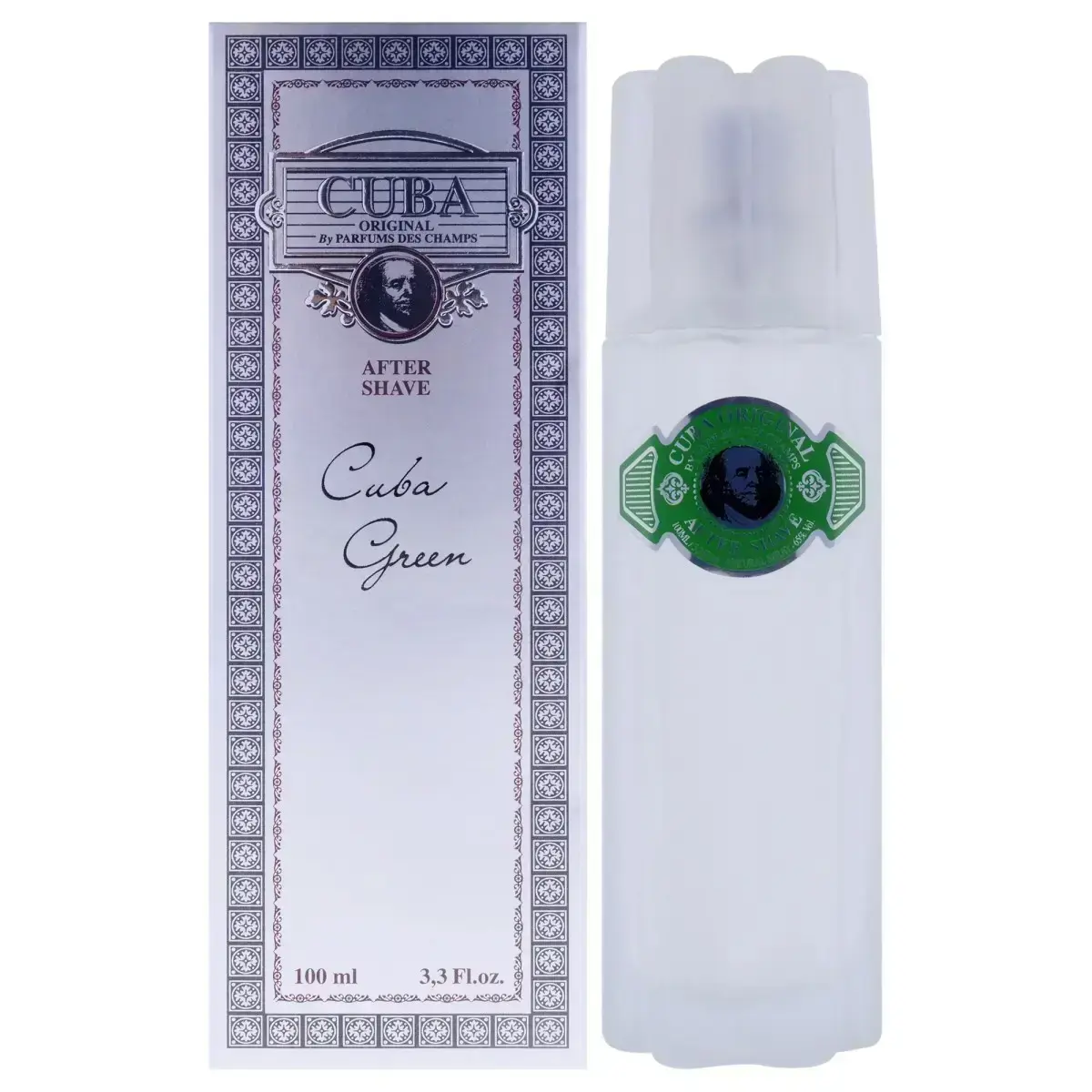 The sensuality of cuba enlivens with cuba Green from the house of cuba paris for men. Top note: Bergamot, Orange, Tarragon. Heart note: Jasmine, Lily of The Valey, Lavender, Apple, Pine Needle. Base note: Sandalwood, Cedarwood, Patchouli, Moss, Amber.. Features 3.3 oz Cuba Green After Shave; Our products help you to picture the healthy and happy life ahead; Specifications Gender: Men; Volume: 3.3 oz;.