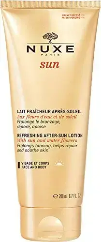 Blended with an expert blend of both sun and water to flowers to make a non-comedogenic face cream that prolongs your tan and soothes the skin in one go, the 200ml Sun Refreshing After-Sun Lotion for face and body from NUXE is a delicious, non-comedogenic face cream that really hydrates your skin. Helping to leave your sun exposed skin soft, silky and perfectly moisturised, this satin-soothing lotion also leaves a summery fragrance on the skin whilst helping to repair it with a gentle, paraben-free formula. - E.D Directions for use: - Apply onto the face and body after showering following sun exposure.