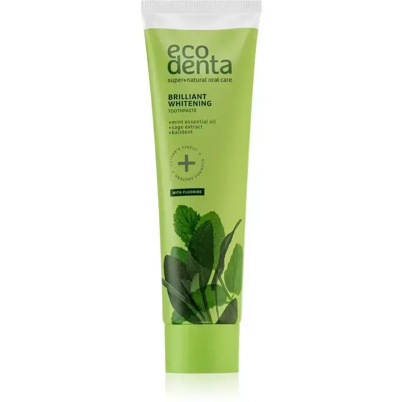 Key benefits Whitens teeth effectively Strengthens tooth enamel Prevents tartar build-up Transform your oral care routine with ECODENTA's Brilliant Whitening Toothpaste, featuring a refreshing blend of mint oil and sage extract. This powerful formula goes beyond mere whitening, working to fortify tooth enamel and ward off tartar build-up. Mint essential oil provides a burst of freshness, invigorating your senses with every brush. Meanwhile, sage extract contributes to the overall health of your teeth and gums. With the added benefit of Sodium Fluoride, this toothpaste offers comprehensive protection, ensuring a brighter, healthier smile with every use. Here at Healf we do the work for you, every product goes through a 3 step curation process of Discovery, Expert Validation, and Community Testing. So you know you are only getting the best. ECODENTA Brilliant Whitening Toothpaste 100 ml.