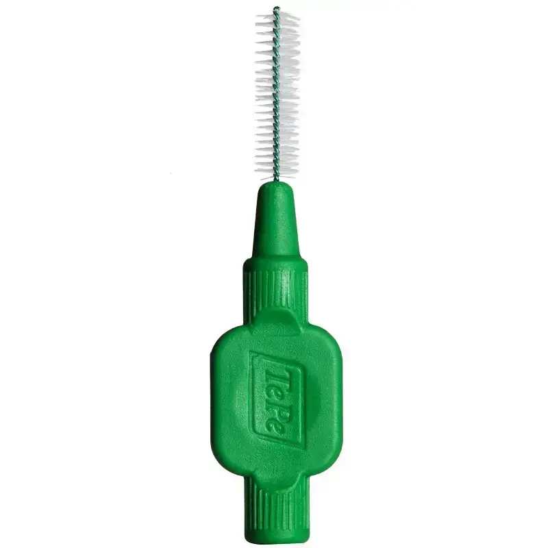 What is TePe Interdental Brushes Original Green TePe Interdental Brushes Original Green are designed specifically to clean in-between your teeth and all those hard to reach places. These special brushes are designed with a metal wire that cleans your teeth thoroughly. With daily use, these brushes can effectively reduce the build-up of plaque - thus preventing gum disease, bad breath and tooth decay. Usage How to use TePe Interdental Brushes Original Green Directions for the use of TePe Interdental Brushes Original Green: For the front of the mouth, insert the brush in the space between the teeth at the gum level by turning slightly. This technique aids access and reduces stress on the wire, thereby lengthening the life of the brush. Once inserted, gently move the brush back and forth a few times to remove plaque and debris. For the back of the mouth, access may be improved by first curving the brush head. Do not bend. Never force the brush into a space. Always rinse the brush with water after use. Use daily, we recommend you change the brush every week, or when the bristles become worn.Usage Warnings Precautions to consider before using TePe Interdental Brushes Original Green You should carefully read all product packaging and labels prior to use.Warnings.