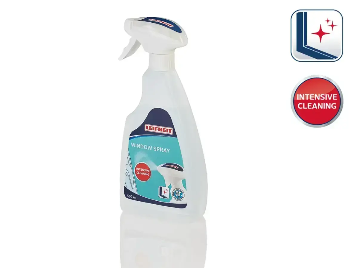 Logu tīrīšana nekad nav bijusi tik vienkārša: LEIFHEIT logu tīrītājs ātri un rūpīgi notīra logus un spoguļus, neatstājot švīkas. Vienkārši izsmidziniet, ļaujiet nedaudz laika iedarboties un notīriet ar LEIFHEIT vakuuma tīrītāju. Šis efektīvais līdzeklis bez problēmām notīra netīrumus, putekļus un taukainas nogulsnes, un atstāj nevainojamu spīdumu. 500ml izsmidzināšanas pudeli var uzpildīt ar LEIFHEIT 1 L koncentrāta stikla tīrīšanas līdzekli.