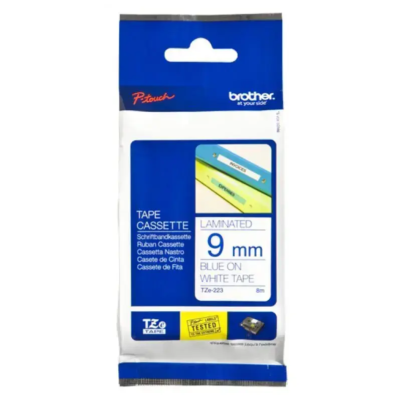 Das Original Brother TZe-223 Schriftband mit blauer Schrift auf weißem Hintergrund ist perfekt lesbar und vielseitig einsetzbar – ganz gleich, ob zu Hause, im Büro oder an anderen Arbeitsplätzen. Dank seiner Laminierung ist das Schriftband wisch-, wetter- und kratzfest und hält selbst extremen Bedingungen hinsichtlich Abrieb, Temperaturen, Chemikalien und UV-Licht stand.