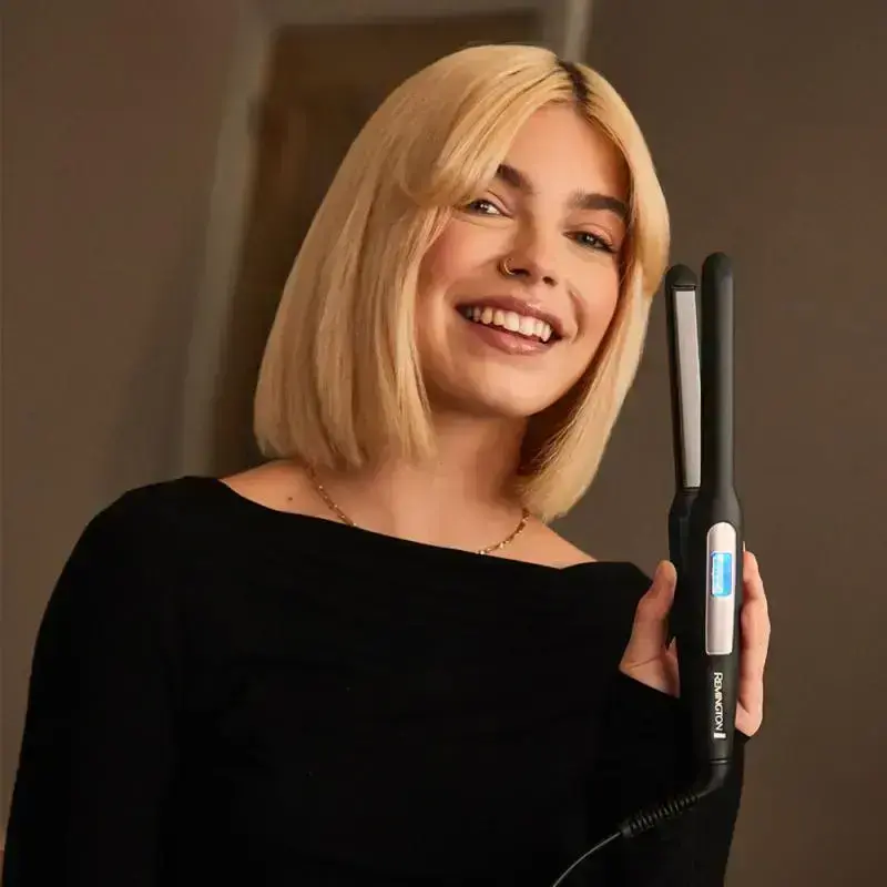 Der Pro-Ceramic Extra-Slim Haarglätter ist die Antwort auf Kurzhaarschnitte, Pixies und Frisuren mit Pony. Mit seinen extra schmalen Platten, die 45 % schmaler sind als die Standardplatten, bekommst du kürzere Haare leichter in den Griff. Darüber hinaus sind die Platten dank der Advanced Ceramic Ultra Beschichtung um 75 % glatter, sodass sie sanft durch Ihr Haar gleiten, ohne sich zu verhaken. Dank der präzisen Temperaturregelung mit 9 Stufen lässt sich das Styling genau auf deinen Haartyp abstimmen. Du hast es eilig? Kein Problem! Dank der ultraschnellen Aufheizzeit ist das Stylinggerät in nur 15 Sekunden einsatzbereit. Bist du bereit, deine Frisur zu optimieren?EXTRA SCHMALE STYLINGPLATTENHast du Probleme, dein kurzes Haar zu stylen? Oder möchtest du nach einer großen Veränderung neue Looks ausprobieren? Diese Platten sind 45 % schmaler als die Standardplatten und damit perfekt für präzises Styling von kurzem Haar. Dieses Design sorgt dafür, dass jede Haarpartie präzise und kontrolliert erreicht und gestylt werden kann.ADVANCED ULTRA-KERAMIKBESCHICHTUNGDie Advanced Keramik-Ultra-Beschichtung ist um 75 % glatter und sorgt für ein müheloses Gleiten durch das Haar; weniger Reibung bedeutet wenigerDIGITALE TEMPERATURKONTROLLEMit 9 Temperatureinstellungen von 150-230 °C lassen sich die Hitzestufen ganz auf den jeweiligen Haartyp und die Stylingvorlieben abstimmen. Dies ermöglicht ein vielseitiges Styling, egal ob du sanfte Hitze für feines Haar oder höhere Hitze für dickeres Haar bevorzugst.