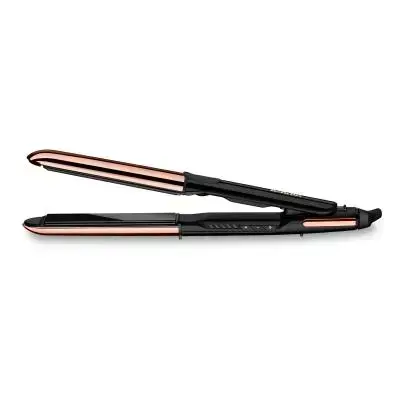 Professionelles 2-in-1 Salonglätteisen für seidig, glatte Ergebnisse oder langanhaltende Locken-Styles. Glätteisen mit hochwertigen Titanium-Keramik beschichteten Platten für extra glattes Haar wie im Salon. Die abgerundeten, beheizten Außenplatten aus rostfreiem Edelstahl kreieren glamouröse Locken und Wellen.Mit den extra langen Platten können größere Haarpartien geglättet werden für super schnelle Ergebnisse bei allen Haartypen. Sorgt durch Ionen-Technologie mit Anti-Frizz-Effekt für Glanz und Geschmeidigkeit.Präzise Temperaturregulierung mit 5 Stufen von 150°C bis 230°C und Advanced Ceramics™ Heizsystem für eine gleichmäßige, konstante Wärmeverteilung.