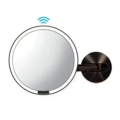 View every detail up close using the simplehuman Wall Mount Sensor Mirrors. The mirror lights up as you approach and mimics natural sunlight's full color spectrum so you can do your best work. High-quality glass is backed by high-purity aluminum coating for reflectivity and clarity. Glass provides precise curvature for distortion-free optics. Telescopic stainless steel swing arm provides smooth adjustments. Tru-lux light system at 600 lux with a color rendering index of 95 closely simulates natural sunlight's full color spectrum to show every detail. Mirror automatically lights up as you approach. 5x magnification provides ample detail. LEDs are rated to perform past 40,000 hours. Hardwired mirror connects straight into the wall.