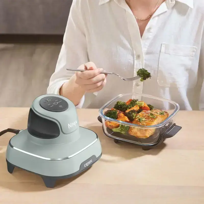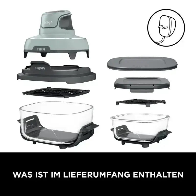 Lerne das Ninja CRISPi 4-in-1 tragbare Kochsystem kennen – die Leistung einer vollwertigen Heißluftfritteuse, kompakt in deiner Hand. Setze einfach den leichten 1700-Watt PowerPod auf einen der Glaskochbehälter, um Mahlzeiten in Familiengröße oder Einzelportionen mit 4 Kochfunktionen zuzubereiten. Zusätzlich kannst du mit bis zu 50 % weniger Energie als in einem Umluftofen kochen.Tragbares Design:Koche auf jeder Arbeitsfläche, wo auch immer eine Steckdose verfügbar ist. Für die Tragbarkeit entwickelt, ist Ninja CRISPi perfekt für kleine Küchen und ordentliche Arbeitsflächen.EIN GERÄT, MEHRERE FUNKTIONEN:Dieses All-in-One Kochsystem hat 4 Kochfunktionen – heißluft-frittieren, braten, warmhalten, knusprig aufheizen. Erhitzte Luft bis zu 185 °C gart dein Essen gleichmäßig knusprig, während die antihaftbeschichteten Crisper-Gittereinsätze für eine rundum optimale Luftzirkulation sorgen. Zusätzlich kannst du Reste aufwerten und ihnen den Geschmack von frisch zubereitetem Essen verleihen.Glaskochfläche:Lerne die Ninja TempWare temperaturwechselbeständigen Glasbehälter kennen. Koche ohne PFAS und behalte dein Essen stets im Blick – dank des transparenten Glas-Designs der Heißluftfritteuse.FAMILIENMAHLZEITEN. EINZELPORTIONEN. AUSTAUSCHBARE BEHÄLTER:Wechsle zwischen dem großen 3,8?L-Behälter und dem kleinen 1,4?L-Behälter für kleinere Portionen. Bereite eine Mahlzeit in unter 15 Minuten zu oder koche ein ganzes 1,2-kg-Hähnchen mit Gemüse. Der CRISPi PowerPod erkennt den Behälter automatisch und passt die Temperatur an. Perfekt für kleine oder große Portionen, Meal-Prepping, Snacks, Partyessen und mehr.Vorbereiten, kochen, servieren und aufbewahren:Mariniere und bereite direkt im Behälter vor, dann einfach den PowerPod anschließen und loskochen. Ergonomische Griffe ermöglichen das direkte Servieren. Der kleine Behälter hat einen auslaufsicheren Snap-Lock-Deckel – ideal für unterwegs. Weniger Abwasch, mehr Komfort.Kochen mit wenig bis gar keinem Öl:Bis zu 75?% weniger Fett – ideal für gesünderes Frittieren und knuspriges Kochen.Fester Hitzeschutz:Sicheres Kochen und Servieren auf Granit, Laminat, Quarz, Holz, Marmor und mehr. Hitzebeständige Füße & Zinken schützen Oberflächen und erleichtern das Abstellen.Spülmaschinengeeignete Teile:Glasbehälter, Adapter und Deckel sind spülmaschinenfest – für eine einfache Reinigung.Platzsparend stapelbar:Pod und Behälter lassen sich ineinander stapeln – ideal für eine ordentliche Küche.Erhältlich in verschiedenen Farben:Wähle die Farbe, die zu deinem Stil passt.Praktisch tragbarDiese kleine Heißluftfritteuse ist perfekt für das Kochen auf Arbeitsflächen, wo auch immer eine Steckdose verfügbar ist. Setze einfach den leichten 1700-Watt PowerPod auf einen der TempWare Glaskochbehälter. Für die Tragbarkeit entwickelt, ist Ninja CRISPi perfekt für kleine Küchen und ordentliche Arbeitsflächen.4 Funktionen in einem GerätEin Gerät, mehrere Funktionen: Heißluft-Frittieren, knusprig aufheizen, warmhalten, braten. Heißluft bis zu 185?°C gart dein Essen gleichmäßig und perfekt knusprig. Zusätzlich kannst du Reste aufwerten und ihnen den Geschmack von frisch zubereitetem Essen verleihen.Temperaturwechselbeständige GlasbehälterWir präsentieren die Ninja TempWare Glasbehälter. Koche ohne PFAS und beobachte, wie dein Essen dank des transparenten Glasdesigns gart.Familienmahlzeiten. Einzelportionen. Austauschbare Behälter.Wechsle zwischen dem großen Behälter mit 3,8 L Fassungsvermögen und dem kleinen Behälter mit 1,4 L Fassungsvermögen für kleinere Portionen. Bereite eine Mahlzeit für eine Person in weniger als 15 Minuten zu oder koche ein ganzes 1,2-kg-Hähnchen mit Gemüse. Perfekt für kleine oder große Portionen, Meal-Prepping, Snacks, Partyessen und vieles mehr.
