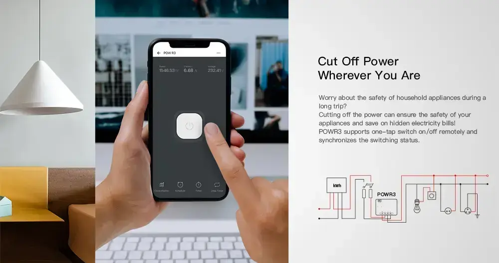 Išmanusis energijos sąnaudų apskaitos jungiklis su ribojimo galimybe Sonoff POWR3
