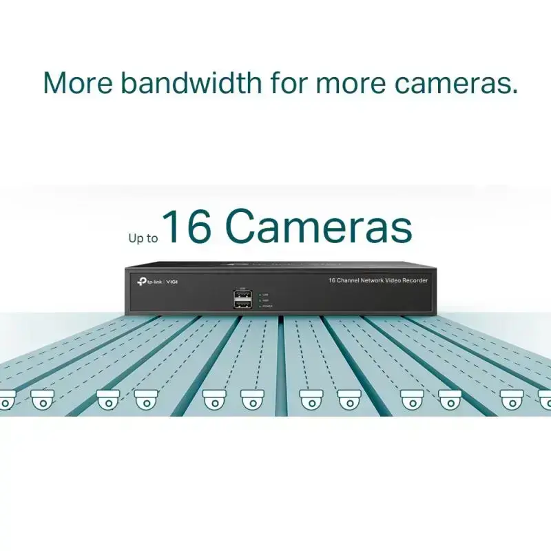 Sicherheit wird nie heruntergefahrenVIGI NVR1016H 16-Kanal-Netzwerk-VideorekorderVIGI NVRDer VIGI-Netzwerk-Videorekorder funktioniert zusammen mit Ihrem Kamerasystemen, um Ihnen beim Anzeigen, Speichern und der Wiedergabe von Videos zu helfen.Sicherheit für jede Stunde und jeden Tag.24/7 kontinuierliche AufzeichnungSpeichert bis zu 10 TB Filmmaterial von angeschlossenen Kameras, um Ihre Daten für einen schnellen und bequemen Zugriff zu sichern.Alles aus jeder Winkel auf einem Bildschirm.16-Kanal-Echtzeit-Live-AnsichtEine scharfe Bildauflösung von bis zu 8 MP und ein 16-Kanal-Display sorgen dafür, dass Sie jedes Detail aus jedem Blickwinkel erfassen.Die Überprüfung von Filmmaterial ist schneller denn je.Schnellsuche und WiedergabeFinden Sie das Zielmaterial ganz einfach nach Datum, Ereignistypen und Tags. Wiederholen Sie die Wiedergabe mit variablen Wiedergabegeschwindigkeiten, um das Filmmaterial schnell zu überprüfen.Behalten Sie auch unterwegs alles im Blick.FernüberwachungDie dedizierte VIGI-App wurde für die Fernüberwachung entwickelt und bietet Einfachheit und Komfort.More Compression. More Savings. More Quality.Without using any extra bandwidth, your cameras transmit compressed crystal-clear video to save disk space, ease network loads, and reduce monitoring costs without sacrificing image quality.Keine Notwendigkeit, lange Kompatibilitätslisten zu überprüfen.ONVIF gewährleistet KompatibilitätFügen Sie IPCs von VIGI und anderen Marken einfach hinzu, um dank barrierefreier Kompatibilität ein leistungsstarkes und abwechslungsreiches Netzwerk aufzubauen.Bis zu 720 Tage lokal gespeichertes Filmmaterial.1 HDD (bis zu 10 TB)Speichert bis zu 10 TB (720 Tage Video) auf einer SATA-Festplatte und schützt Ihren Datenspeicher lokal.Begrüßen Sie Ihre Besucher, bevor sie eintreten.Zwei-Wege-AudioMit der Sprach-Intercom-Unterstützung können Sie Zwei-Wege-Gespräche führen, während Sie Ihren Feed von überall aus ansehen. Geeignet für die Verwaltung.Mehr Bandbreite für mehr Kameras.80 Mbit/s VideozugriffsbandbreiteEine hohe Videozugriffsbandbreite stellt sicher, dass Ihr NVR mehr Kameras mit hoher Auflösung verwaltet.Basierend auf Labortests mit VIGI-Kameras kann VIGI NVR bis zu 16× 4MP-Kameras verwalten.Verwalten Sie alles zentral.Führen Sie Ihr Geschäft mit Ruhe.Das professionelle Überwachungssystem VIGI von TP-Link dient dem Schutz des Unternehmens, an dem Sie hart gearbeitet haben – jederzeit und überall. Unsere herausragenden Funktionen, zuverlässigen Qualitätsgarantien und die vereinfachte Installation sorgen zusammen für die Sicherheit Ihres Unternehmens.