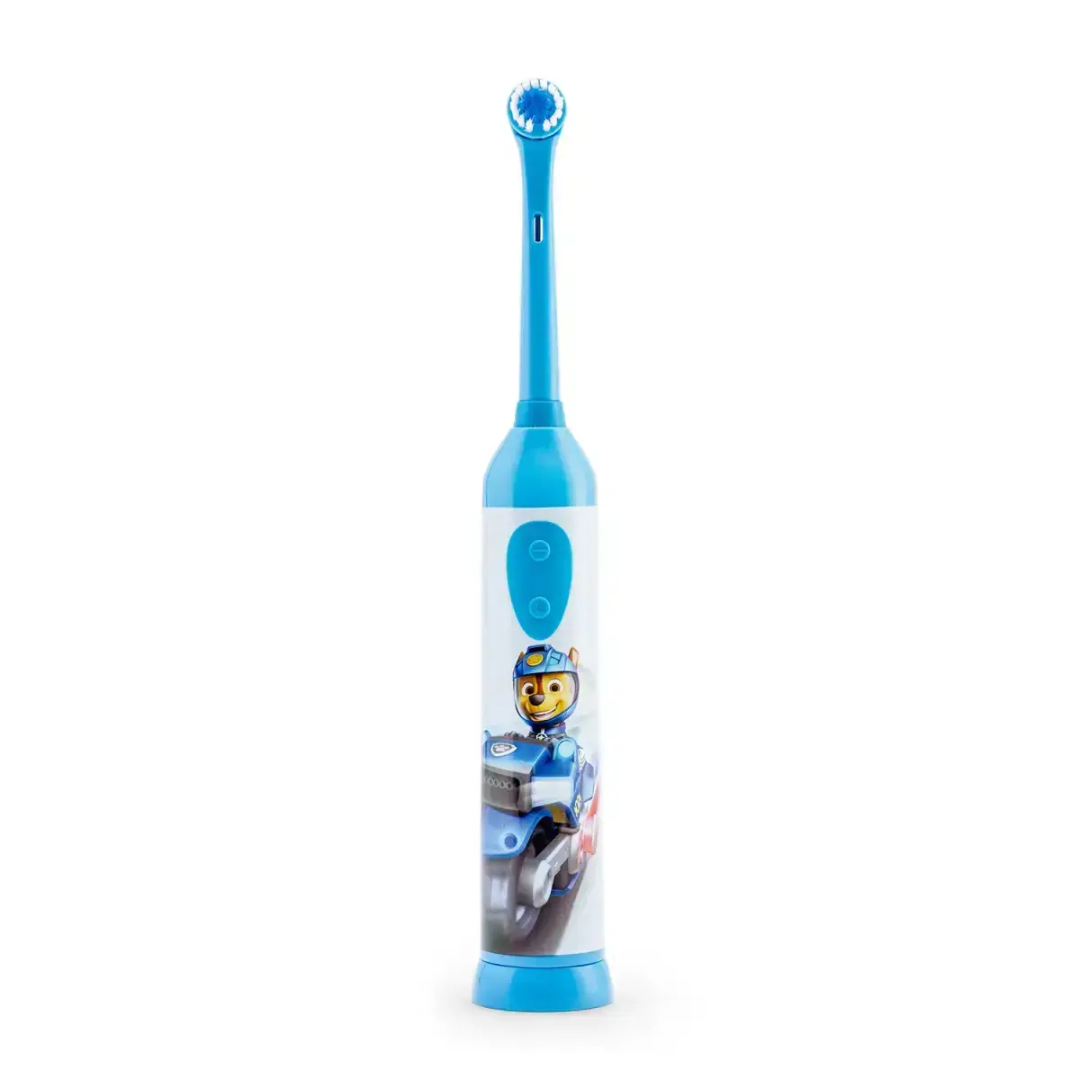 Oscillating toothbrush with a trendy Moto Pups Paw Patrol design provides comfort for oral hygiene.