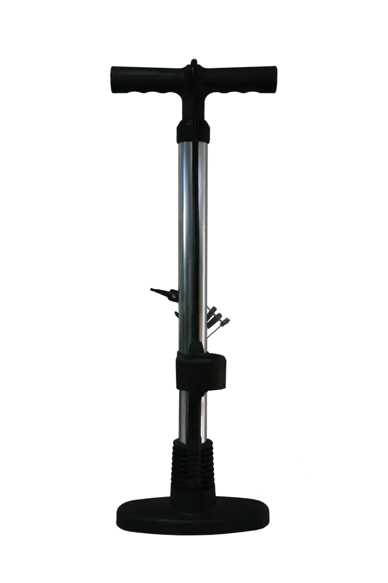 Izturīgs pumpis ar 3 dažādiem vārstu adapteriem. Manometrs ar mērksalām bar un psi.