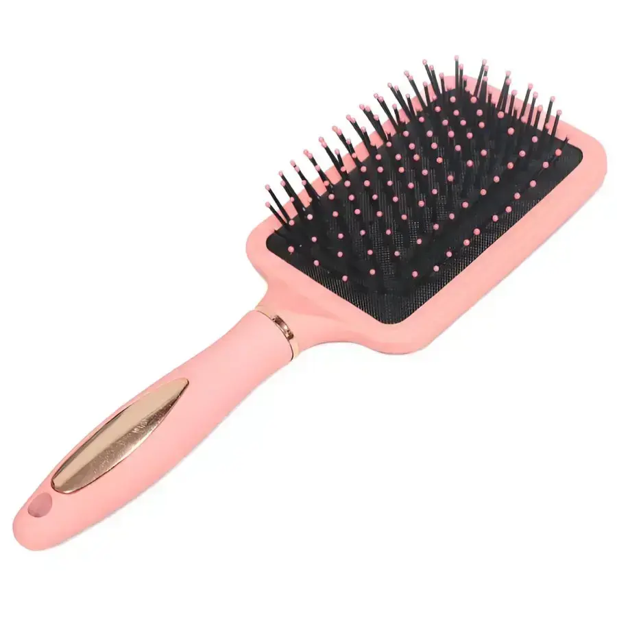 Liela, ērta un efektīva suka, kas lieliski piemērota gariem un bieziem matiem. Plata suka ar elastīgiem sariņiem un noapaļotiem galiem palīdz saudzīgi atšķetināt matus un samazināt matu lūšanu, kā arī nodrošina patīkamu galvas ādas masāžu. Ergonomisks rokturis ar zeltainu akcentu nodrošina stabilu un ērtu satvērienu, padarot suku piemērotu ikdienas lietošanai mājās. Suka izgatavota no izturīgas plastmasas, garums 25 cm.