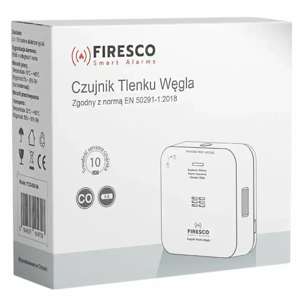 The Firesco FCO-850 WF carbon monoxide detector is a modern device that provides reliable protection against dangerous carbon monoxide (CO) emissions in your home. Equipped with an electrochemical sensor of exceptional accuracy, the detector features longevity – with a lifespan of up to 10 years. Thanks to such high-quality technology, the Firesco FCO-850 WF can detect even minimal concentrations of carbon monoxide, allowing early action and ensuring the safety of all household members.