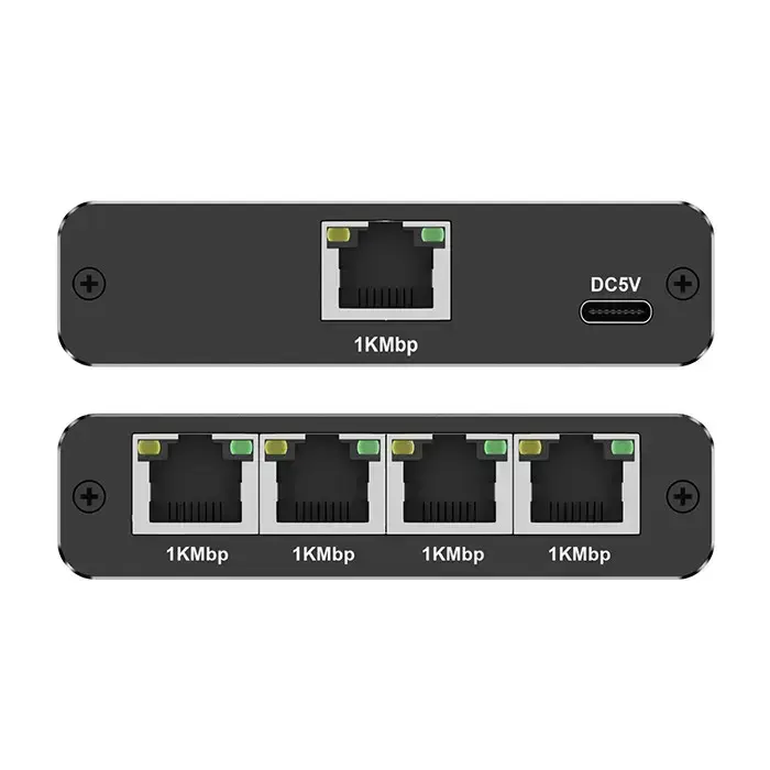 Qoltec Splitter Ethernet mini SWITCH 1x4 RJ45 | 1000Mb/s | USB-C | Aluminium