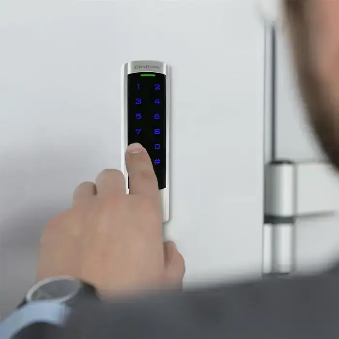 The DIONE code lock by Qoltec using electronic encryption technology secures access to objects and rooms by blocking access for unauthorized persons. It has a doorbell button.