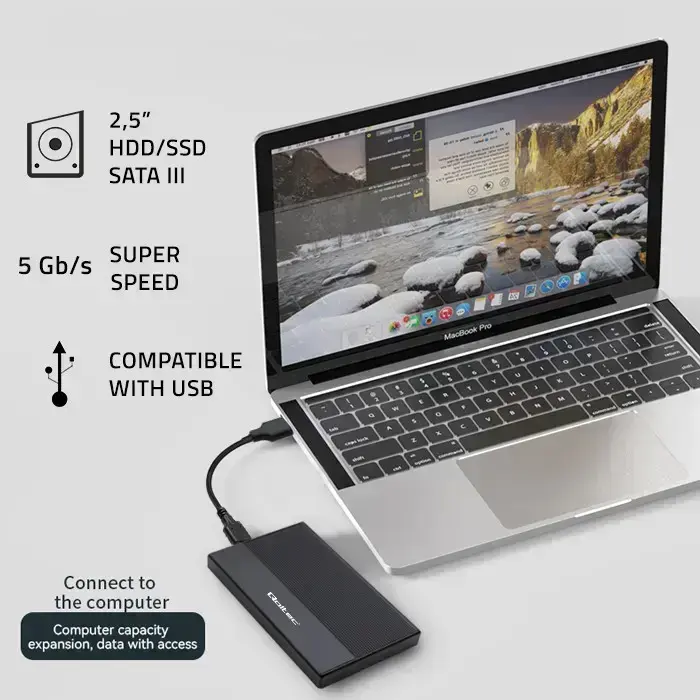 Qoltec Aluminium Enclosure | SSD HDD 2.5'' drive | SATA | USB 3.0 | Super speed 5Gb/s | 2TB | Black