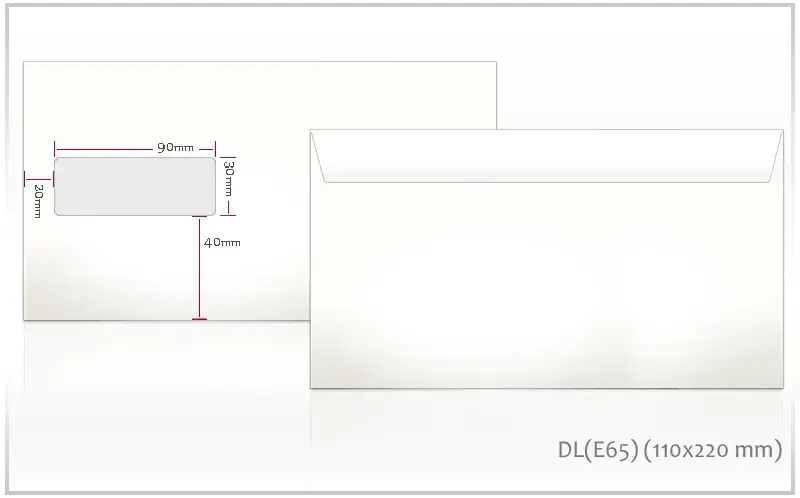 Aploksnes DL HK, E65, 110 x 220 mm, ar logu 30 x 90mm, 75g, baltas, 1000 gab./iepak.