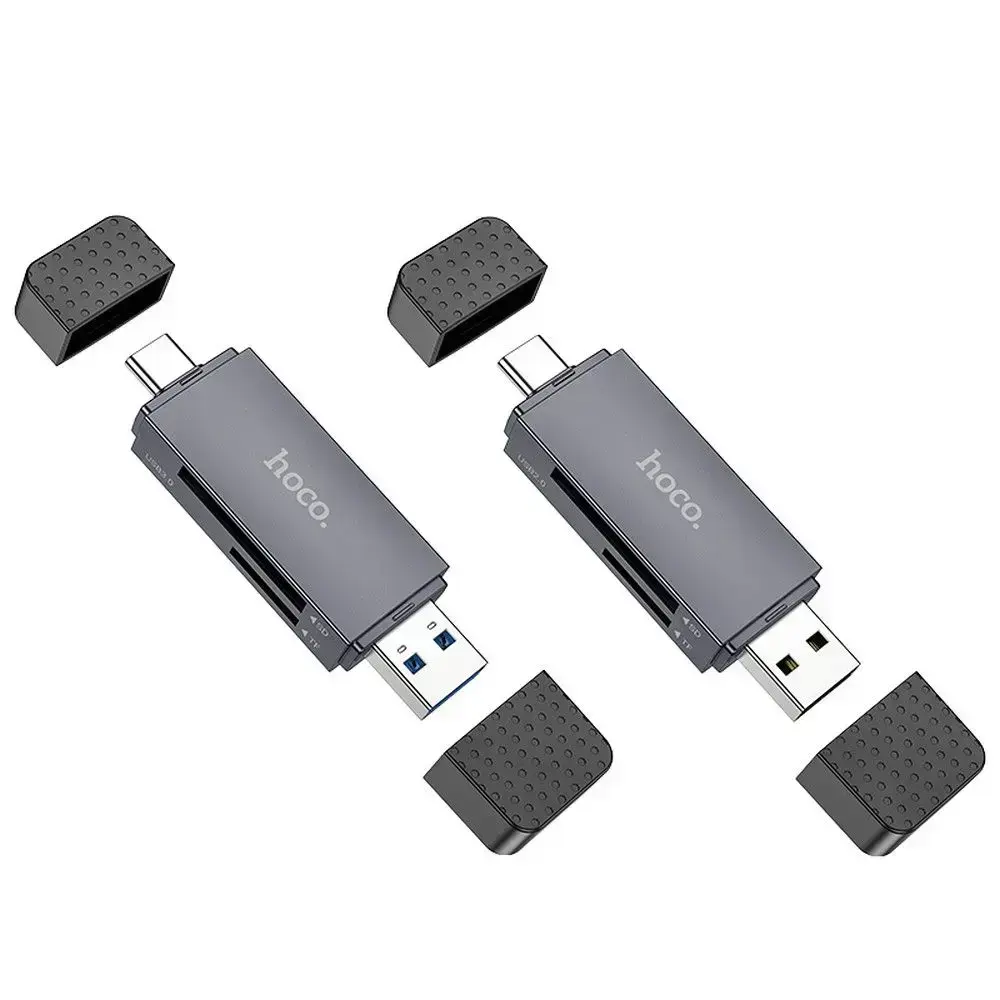2-in-1 memory card reader with USB-A 3.0 / USB-C 3.0 connector. from Hoco. Supports SD and Micro SD cards, currently the most popular on the market. Compatible with most operating systems available on the market