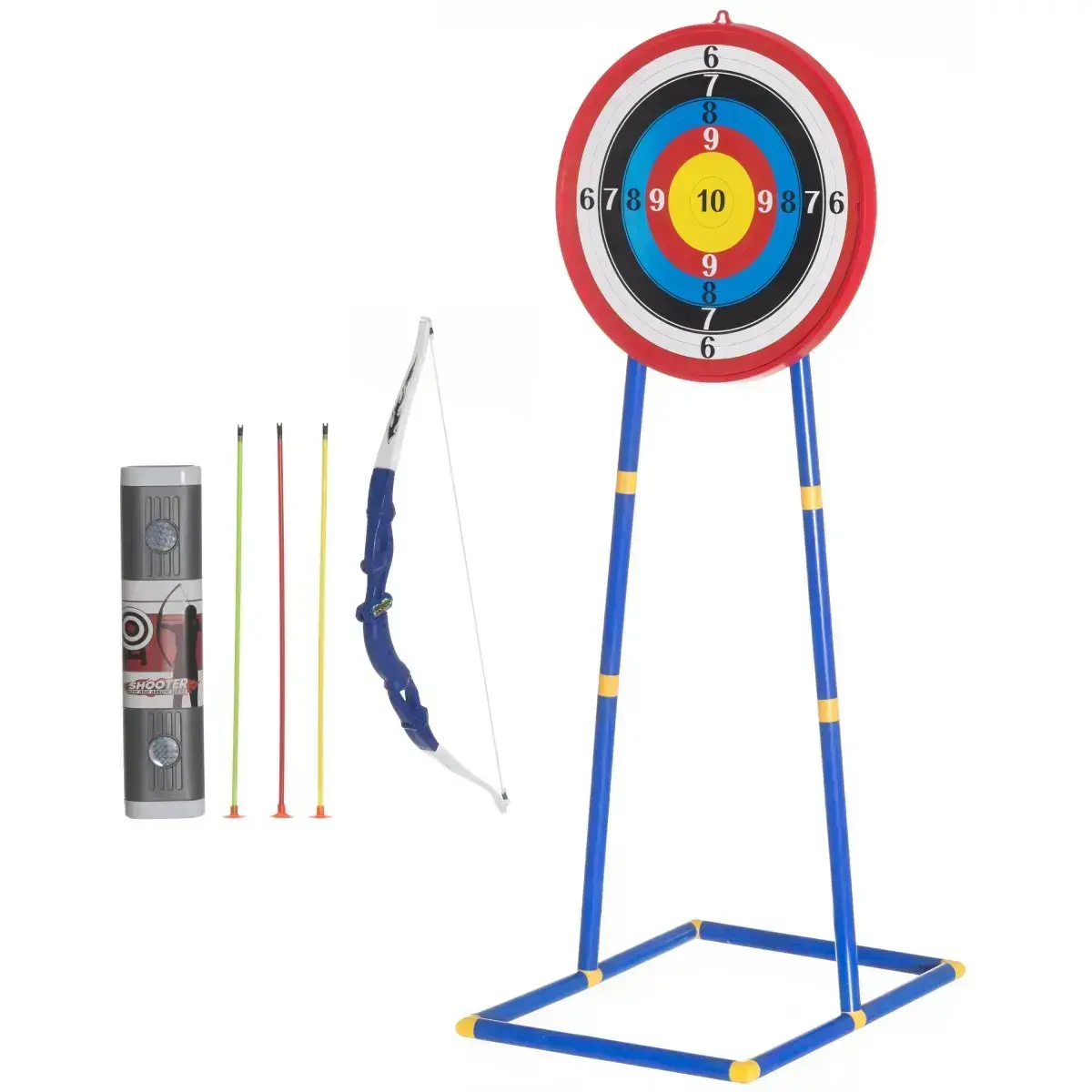 Loku šaušanas komplekts ļaus bērniem izjust sacensību garu un attīstīt precizitāti, koordināciju un koncentrēšanās spējas. Komplektā ietilpst loks (22 × 59 cm), trīs bultas ar drošiem uzgaļiem, ērta pārnēsājamā soma, kā arī statīvā novietojams mērķis (52 × 40 × 120 cm) ar skaidriem punktu apzīmējumiem. Mērķa diametrs 40 cm. Piemērots bērniem no 8 gadu vecuma.