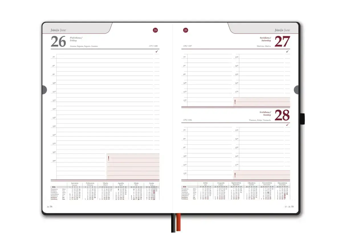 • Aizvērtam plānotājam lapu malas krāsotas melnā krāsā.