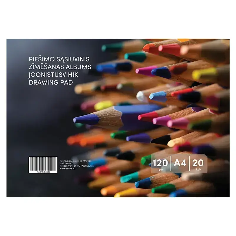 Zīmēšanas albums, 20 loksnes, A4, 120 gsm, vāks 130 gsm