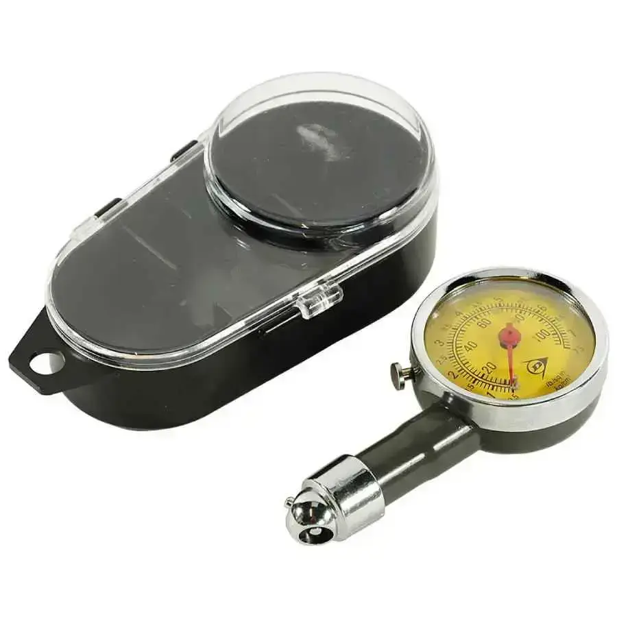 Dunlop auto riepu spiediena mērierīce ir precīzs un ērts rīks, kas ļauj uzturēt pareizu riepu spiedienu dažādiem transportlīdzekļiem - no velosipēdiem un motocikliem līdz vieglajām automašīnām. Ierīce mēra spiedienu līdz 7.5 bāriem, nodrošinot precīzu pārbaudi un nepieciešamības gadījumā ar iebūvēto iztukšošanas vārstu arī liekā gaisa nolaišanu bez papildu rīkiem. Analogais manometrs ir viegli nolasāms un ergonomiskais dizains padara mērierīci īpaši ērti lietojamu. Kompaktie izmēri (10 × 5 × 2 cm) un plastmasas glabāšanas futlāris ļauj to ērti paņemt līdzi vai glabāt automašīnā. Izturīgā metāla konstrukcija garantē ilgmūžību un aizsardzību pret bojājumiem.