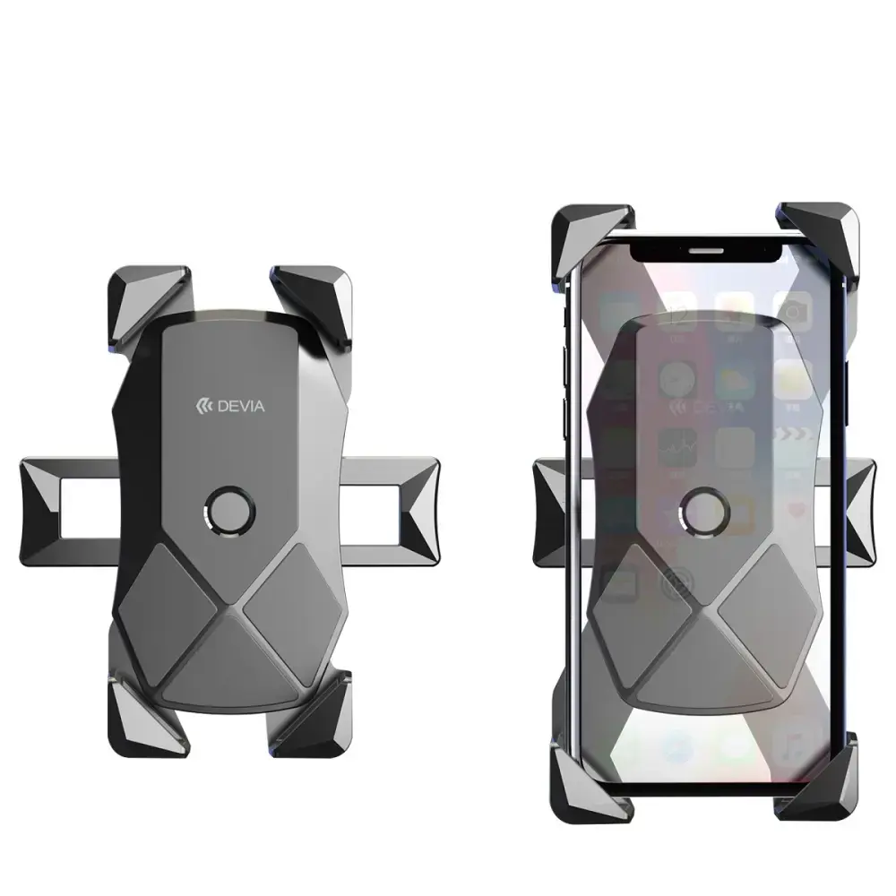 Devia Voyager is a universal smartphone bike mount with a handlebar holder, suitable for bicycles and motorcycles. A special construction keeps the smartphone securely in a stable position.