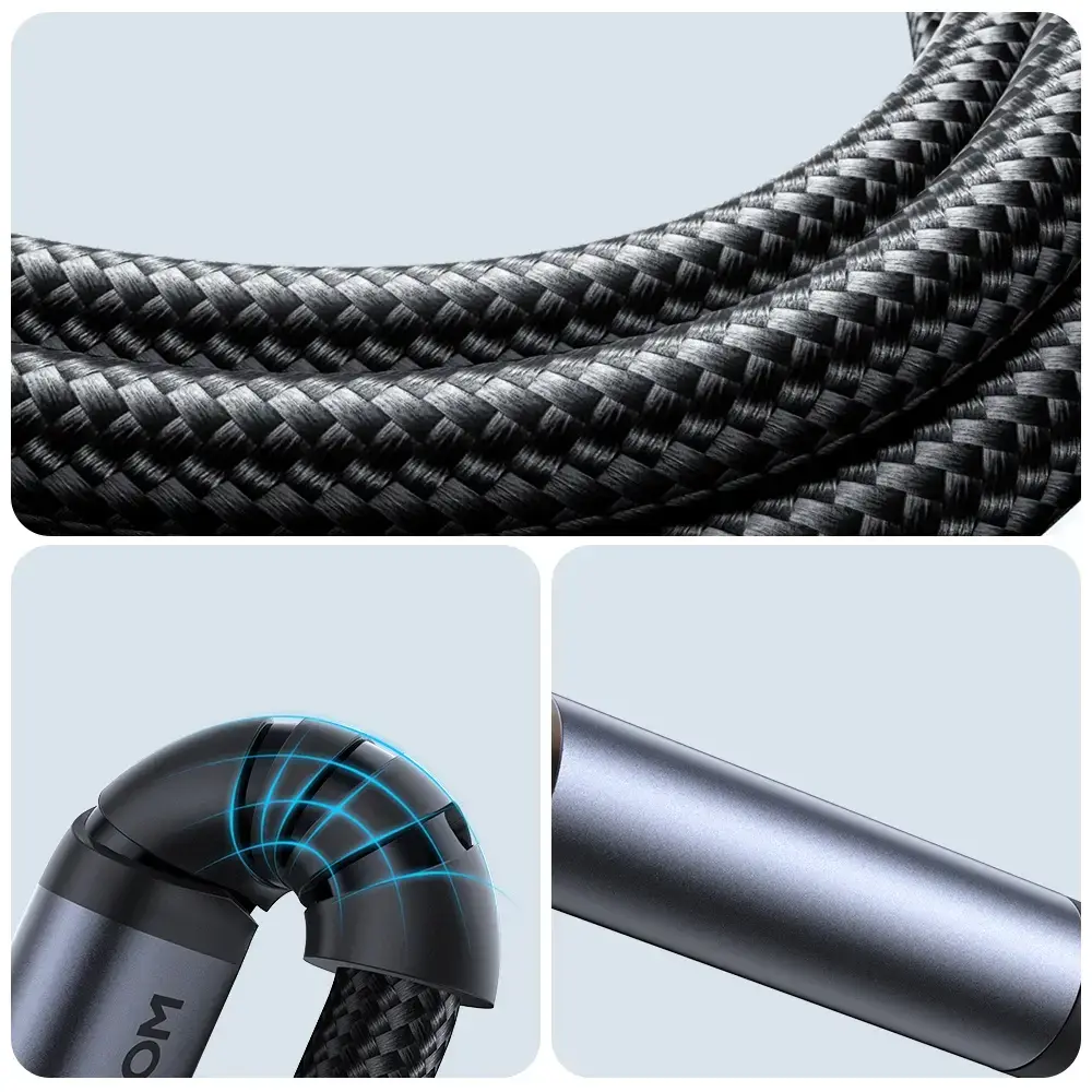 The Joyroom cable housing is made of a solid aluminum alloy, which makes it not only durable, but also scratch-resistant. Store the cable safely in your bag or pocket without fear of damage. Durability and elegance combined in one product.