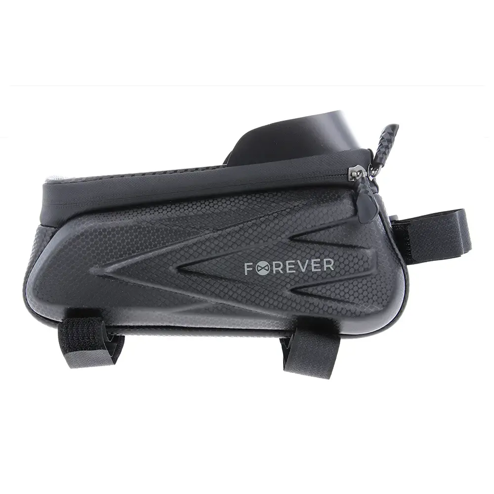 "The Forever Outdoor waterproof bicycle bag allows you to conveniently use the phone or navigation while cycling, also in rainy weather. Reinforced"" hard-shell ""construction allows you to safely transport small items such as keys, multitool, clasp. Mounting the bag is easy and fast - no tools are needed for this. Thanks to the conductive touch foil, we can operate the touch screen without taking the phone out of the bag. The product is mounted on the bicycle frame, ensuring the safety of the phone being transported. Size of the phone space 17 x 9 cm, window 9 x 16 cm.