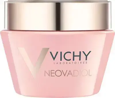 With a rejuvenating formula that includes mother of pearl and rosy mineral pigments to revitalise tired and dull complexions, Vichy Neovadiol Rose Platinium Day Care is a multi-tasking anti-ageing moisturiser that improves skin volume, firmness, and luminosity. Benefits of Vichy Neovadiol Rose Platinium Day Care: Rejuvenates and revitalises the complexion. Smooths, firms, and plumps skin. Nourishes and moisturises. Infused with Vichy volcanic water and 57% rose extract to soothe and calm the skin, Vichy Neovadiol Rose Platinium Day Care is enriched with a blend of calcium, beeswax, and minerals to nourish, and lipohydroxy acid (LHA) to reduce the appearance of wrinkles, smooth uneven skin, and stimulate cell renewal. Suitable for all skin types, especially mature skin, the hypoallergenic moisturiser, which has an uplifting aroma, smooths, firms, plumps, and leaves the complexion looking healthy, more youthful, and radiant. How to use: Apply to a clean, dry face every morning. Size: 50ml.