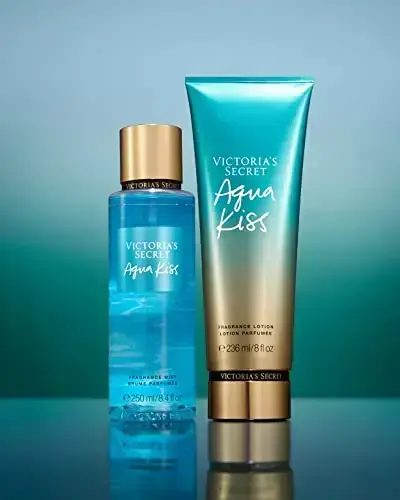 Victoria's Secret Aqua Kiss Body Lotion 8 oz. This is a skin nourishing and fast absorbing creamy fragrance lotion. Delivers a full 24 hours of hydration. It is recommended for daily use and ideal for all skin types.