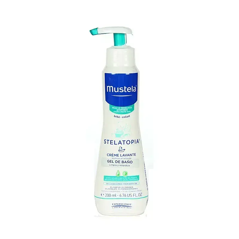 Fragrance-free bath gel to gently cleanse the face, body and hair of newborns, babies and children with atopic skin, from birth (1). (1) Babies out of neonatology. • Gently cleanses while protecting baby's and child's skin. • Instantly relieves feelings of irritation and tightness. • Leaves skin soft, supple and silky. • It does not itch in the eyes. Physiological PH. PLEASURE TO USE • Smooth and creamy texture, particularly suitable for atopic skin. • Available in dosing container and large size.