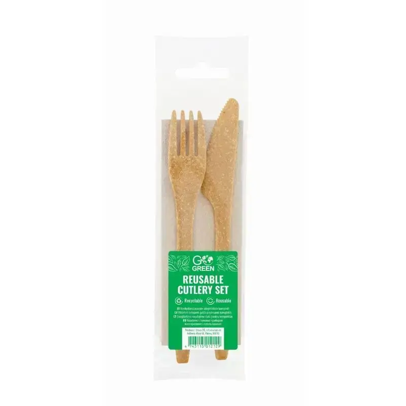 Say no to single-use plastics with Go Green premium quality reusable cutlery! Made from renewable resources - the product can be recycled together with conventional plastics. The accessories are extremely durable, guaranteeing their sustainability.