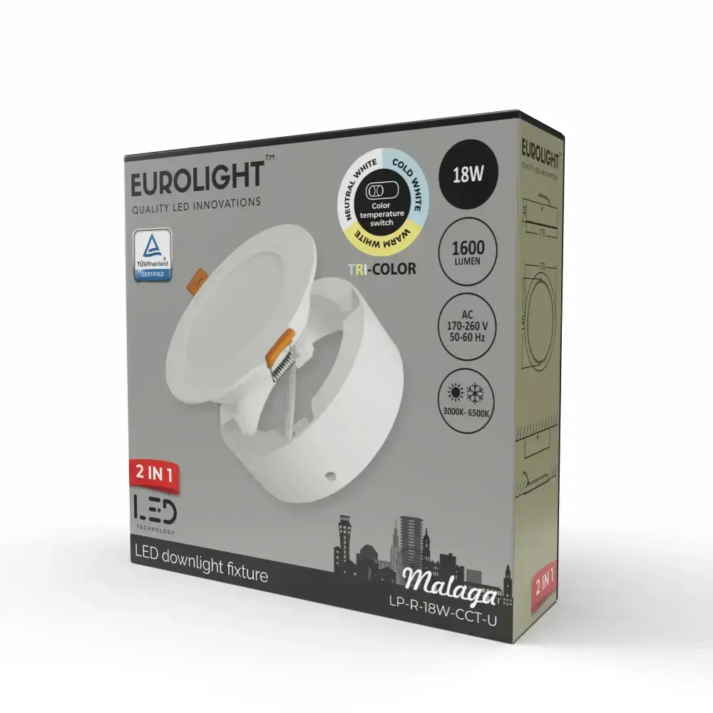MALAGA LED panelė universali 18W 85lm/W CRI80+ CCT Eurolight